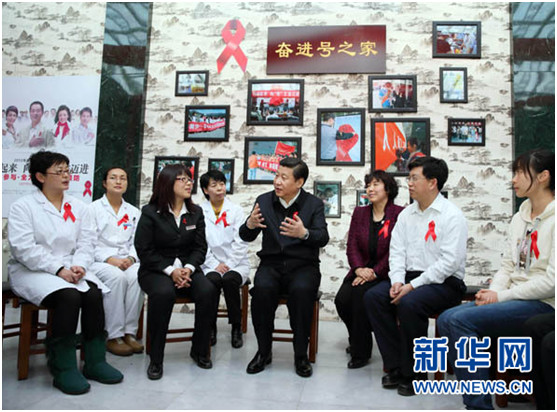 2012年11月30日,在第25个世界艾滋病日到来之际,国家领导人来到北京市丰台区蒲黄榆社区卫生服务中心石榴园分中心的北京市社区药物维持治疗第七门诊部,看望艾滋病患者,参加艾滋病防治志愿者培训交流活动。